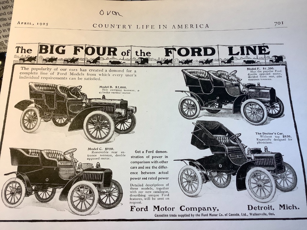 Ford had a Model labeled "The Doctor's Car", other models included Model B, Model C, Touring, Torpedo, Commercial Roadster, Coupe etc.