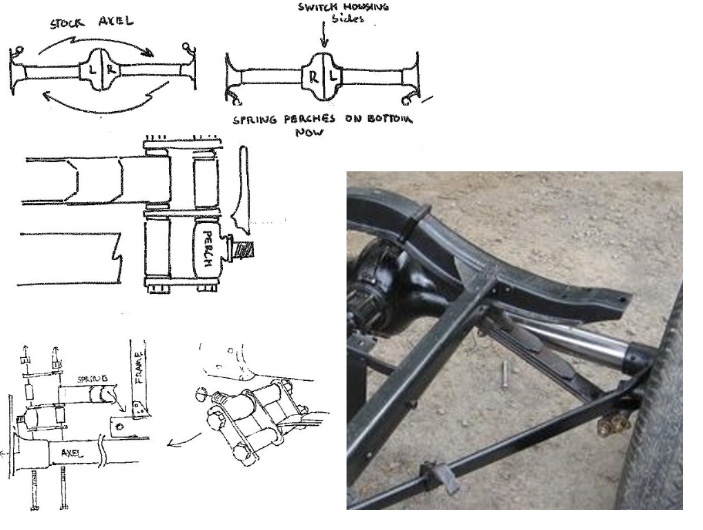 A dropped axle is easy though pricey. My car has the 4 inch drop Mercury axle and reversed front spring eyes. It was enough before but I could always use 26/27 spindles for another inch up front. The frame is simply kicked up in the rear and I have a reverse eye rear leaf if I want to drop it a little more. I’m not in favor of the heated/bent rear springs.