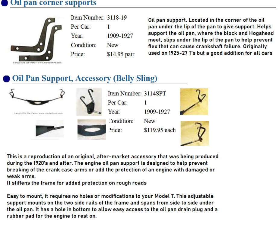 Oil Pan SupportsGeorge House wrote: ↑Tue Jan 04, 2022 11:12 amKen is right. Just get those 2 accessory L brackets that fit under the crankcase with 4 bolt holes each that stabilizes the tranny cover, pan and block. I’m at the Dr. office now but someone will list the correct nomenclature.