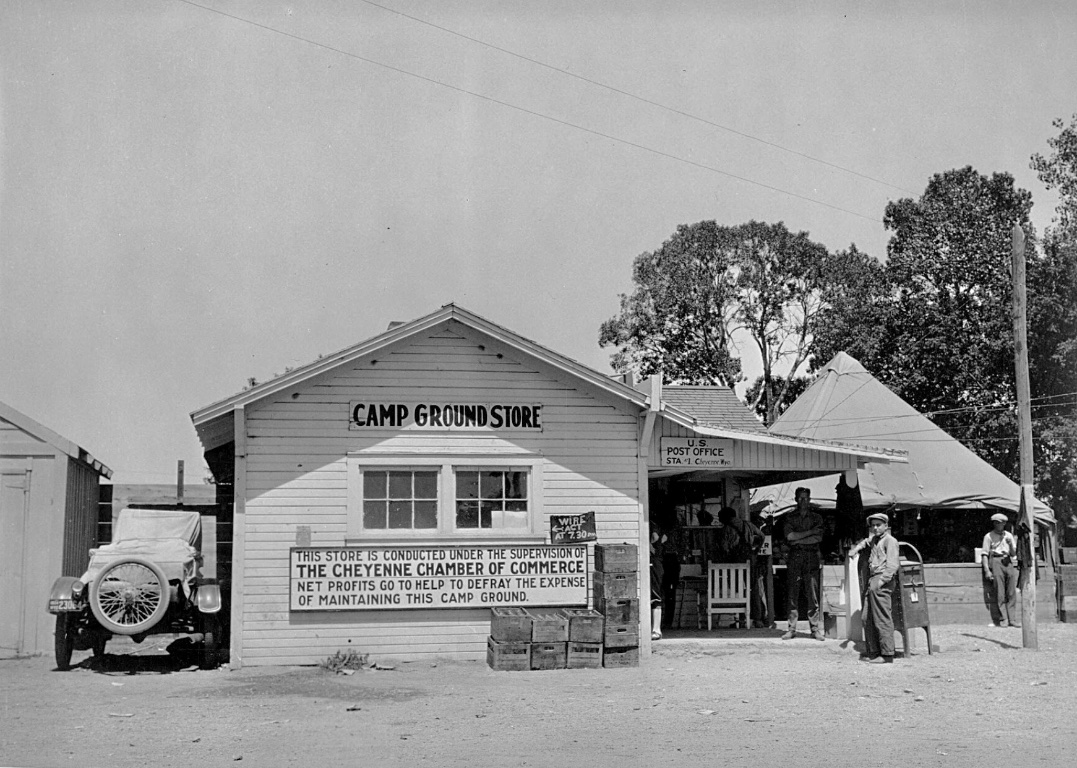 I believe that "auto camping" was very popular at one time. Also, people traveling any distance in many parts of the country had to carry their own supplies, or do without. Accomodations were scarce in many areas.