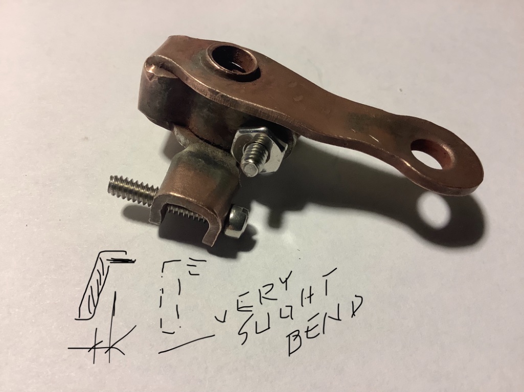 Adjusting this piece. The stop screw can have a small nut on it to keep it from moving, but originally one end of the threaded bracket was tweaked just a bit to act as a lock. Just a slight bend. The very slight shift of one of the threaded holes will keep the screw in place and set.