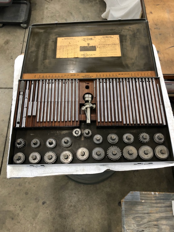 I have the same Sioux valve grinder. Mine is still wearing about 95% of its original paint. Without going out to look, think it is a Catalog number 650. It had a new stone installed when I got it. Only problem is, the outer diameter is now too small to use the stem grinder. With the chuck installed, the stem holder can only go on one way, putting the Vs to the outside of the stone. The stem ends up with a nub on the end. While I don't think so, the stem holder that came with it, may be the wrong one. The stem grinder is missing the stem clamp/hold down. It also came with the stone dresser, the allan tool with knurled handle for adjusting the collars and one other piece that don't recall its use. Because this model is dry grind, takes a little more time to grind the valve and stems, allowing a cooling cycle.