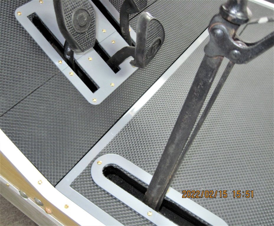 Today my floor/deck covering came, I'm happy, correct size pyramids, automotive cert (oil resistant and fire resistant.) at a price I thought was great $5 linear foot 3 foot wide I purchased 8 foot just in case ($40), then I found my NOS tail light. I went with black as I don't want to look at a white floor in the sun, the white aluminum trim is in primer and will be grey like the pedal trim.