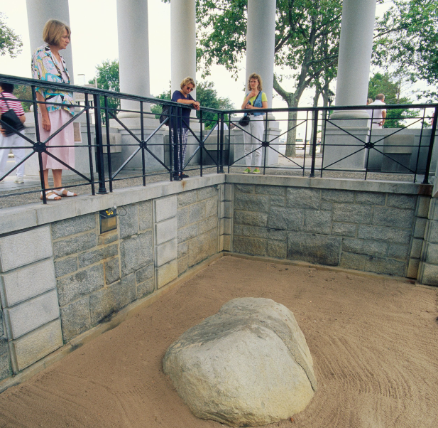 "But it really doesn't — for lack of a better term — it doesn't 'go viral' until 1769, when the people here in Plymouth start celebrating Forefathers' Day and the story is retold." At that point, the story of Plymouth Rock started to become a legend — at the same time that the American Revolution was starting to take root.