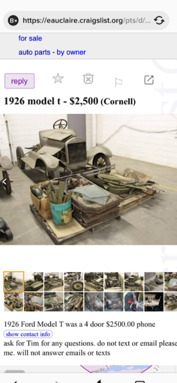 * REQUIRED* Type and Year of Model Ts owned: 2, '25 T Runabouts, '14 Touring