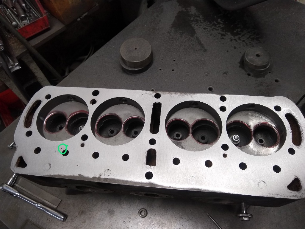 An update on the head. I just got this photo from the shop showing the progress. Half of one valve seat needed to be welded (you can tell which one on the picture from the polishing/grinding marks. They took a little more off the deck than is shown in this picture (a total of 10/1000).