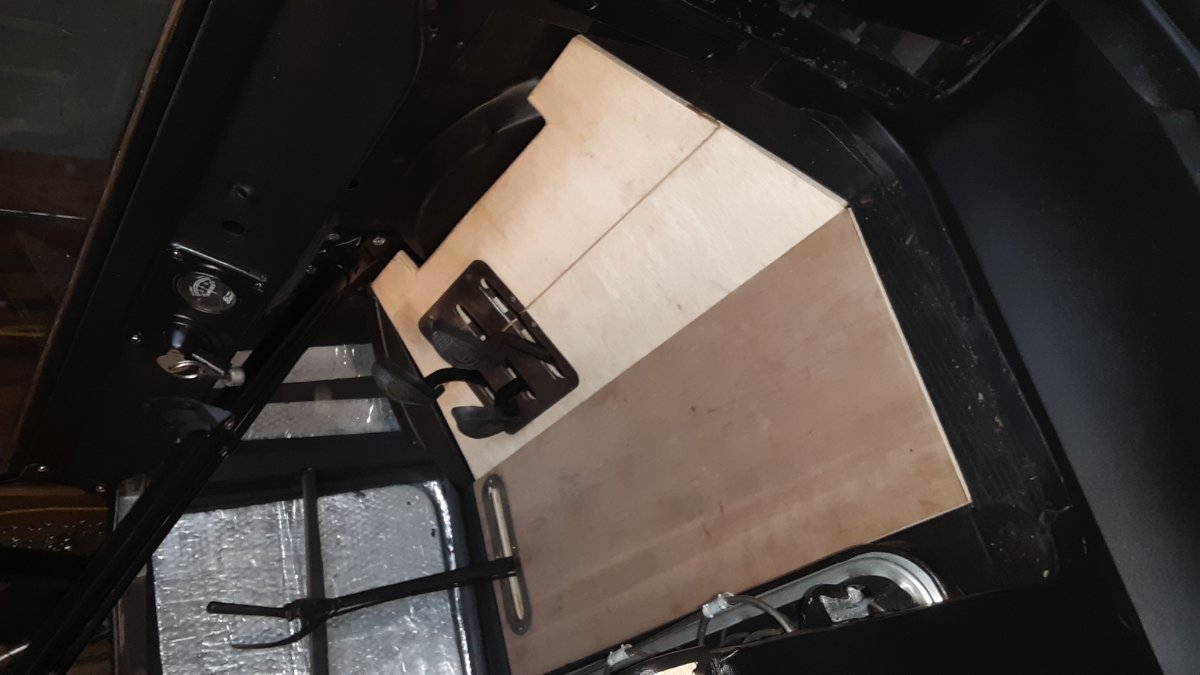 I was busy last night! Next I have to make a removable gate for the back. Passenger access to the rear is across where the passenger seat should be.