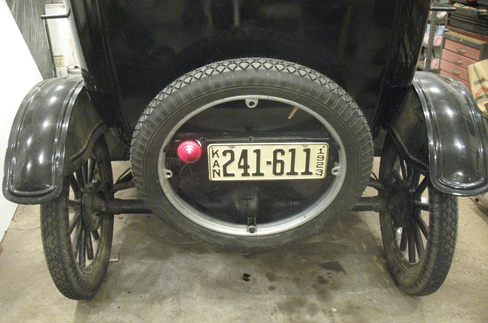 Steve Jelf wrote: ↑Tue Apr 23, 2019 11:03 pmStuck indoors on a rainy day, I installed the spare carrier on my 1923 touring and mounted a spare tire. Little by little I'm getting the car ready to make some trips.