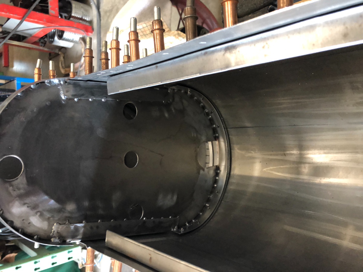 After fitting the outside ring for the end cap to side panel, I leave the wood in place with the Cleco's. By doing this if you cause smoke you are welding to much for to long and the wood helps control heat equally as you bounce from one end to the other preventing distortion. After all "pearl" welding is complete, I come back in very short runs with plenty of cooling cycles and put another weld towards the inner side of the panel. This technique in tin/panel making causes a light tempering of the metal. A very good thing when you are wanting to preserve a shape in smaller panels such as this one with doming. Always use a quality metal for excellent results.