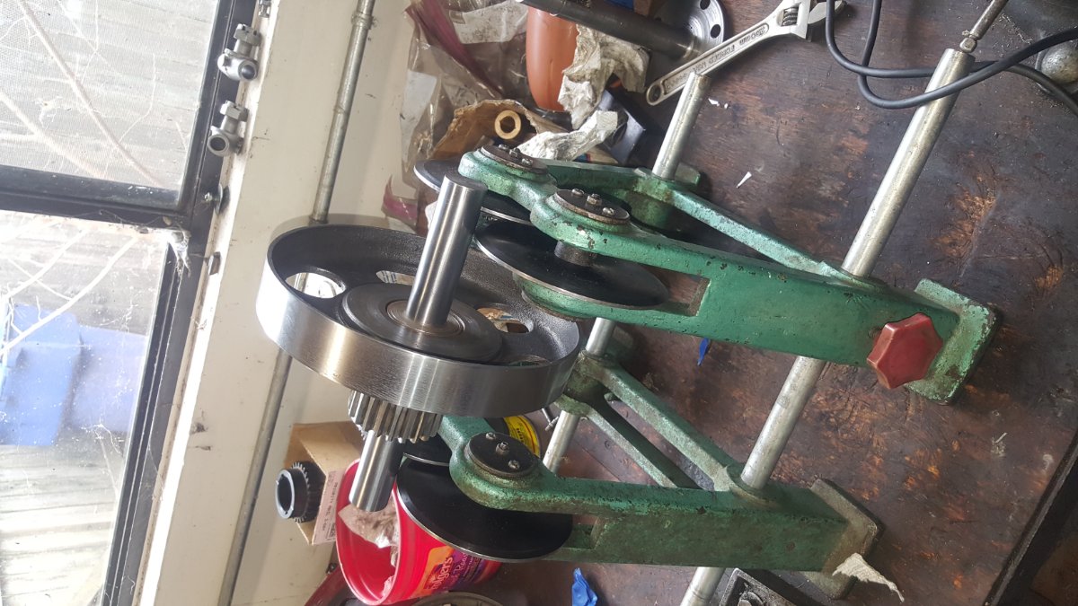 I am balancing transmission drums today and tomorrow. I have a static balancer, the type with rwo sets of wheels on two triangular stands and two mandrels I made. The low speed drum was 11 grams out, the slow speed 12 grams. Getting is perfect is a neverending battle, but the two are better than 2 grams out so far. I'll probably try to get it closer tomorrow, but it seems once you get one heavy side balanced, another pops up in a different place. I'll get it as close as I can without going bonkers.