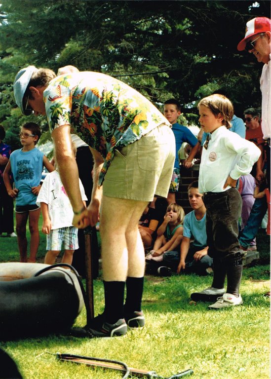I was looking for this photo earlier and just found it. It was a pumping contest of some kind on a tour long ago. Our son, with the bow tie, was standing in line to compete. The goal was to burst the inner tube.