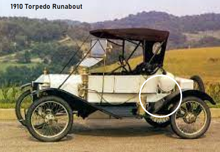 The term 'torpedo' in 1910-11 was more commonly associated with the small explosive devices clipped to rails to warn approaching trains of trouble on the tracks ahead, rather than fast, stealthy naval torpedos. How did the word get connected to cars? Just wondering and wandering, jb
