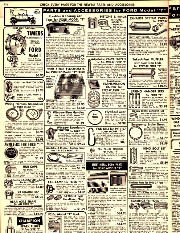 In the mid-1950s, there were T parts in the back of Sears Roebuck catalog.