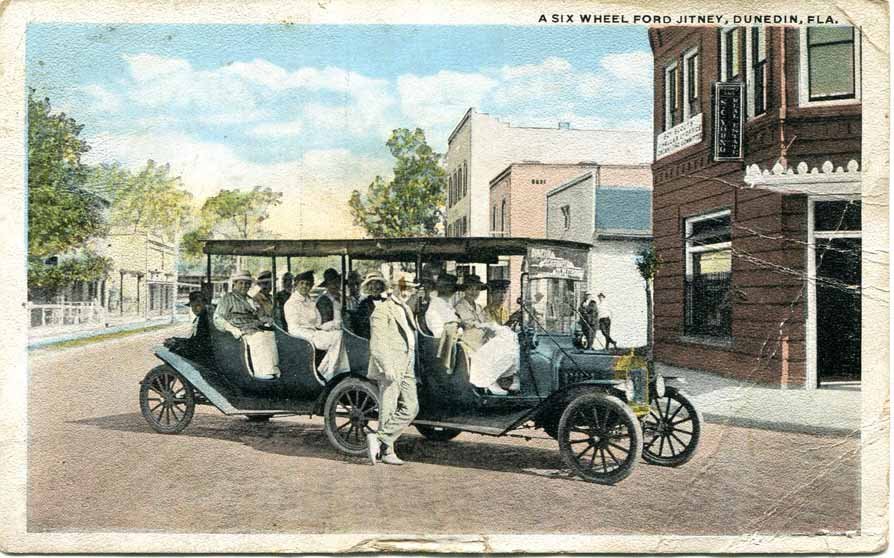 Hi, Peter. The pic of the jitney of the Dunedin-Clearwater-Largo line difference in seating arrangement (one less seat) and apparent use of front fenders at the rear suggests it may have been a homebuilt machine. Or perhaps just a different year.