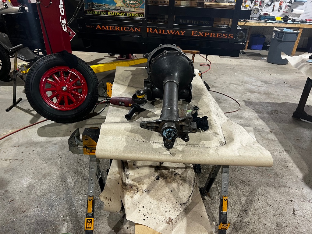 I had the front axle and steering components from my ‘24 touring car straightened and rebushed a couple of months ago, got them cleaned up and painted a couple weeks ago, and am finally getting around to getting them reassembled. When I was reinstalling the tie rod I thought it was interesting to see how much the axle had been twisted. :shock: It was an easy job to loosen the adjustable clevis/ball-end and make the correction. The spindles appear parallel to the naked eye, but I’m going to leave the bolts finger tight until I get the axle and wheels reinstalled and check the toe-in.