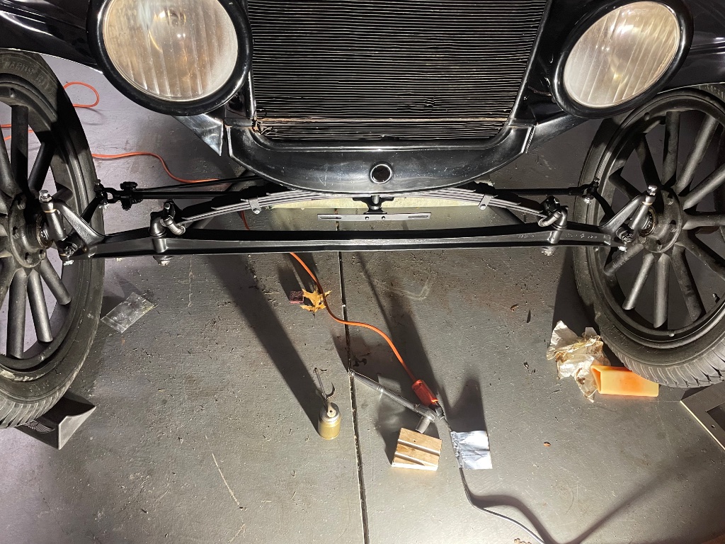Earlier this week I got all the spring components cleaned up and have started the painting process. I’m using Rustoleum Rust Reformer on all the parts except the perches, which had good paint on them before. They cleaned up nice and bright so I’m using Rustoleum self-etching zinc oxide primer on them. I’ll be topcoating the bottom surfaces of all the spring leaves except the main with EZ-Slide graphite paint, which seems to be doing it’s job on the front spring of my ‘25 express wagon. I’ll topcoat everything else with Rustoleum black satin enamel. That’s what’s on the axle, and it looks good without being too glossy.