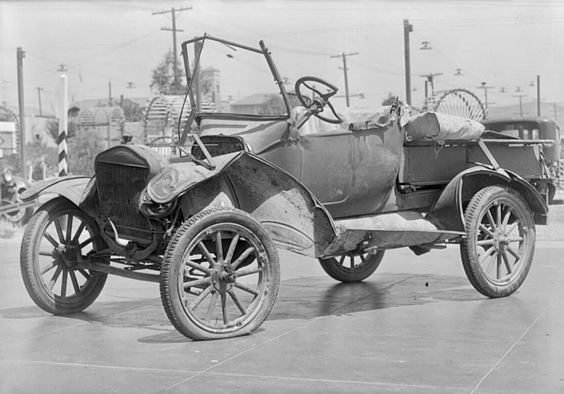 A close up of the nearly new 1917 So Cal Edison Ford that hit the 1913 Hudson. The house directly behind the Hudson still exists, at the intersection of Sunset and Gallardo in East LA.