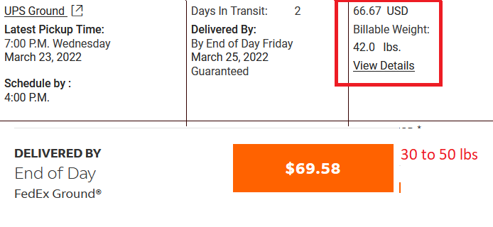 Did UPS & FedEX below - you could but a box with the hubs in it inside the rim box and ship for the same amount 50 lbs is their cut off for the box size before the price jumps. I weighed a rim an 7lbs did not do the hub. FedEX provides a higher insurance default.