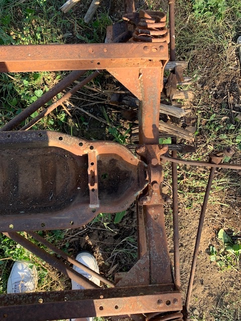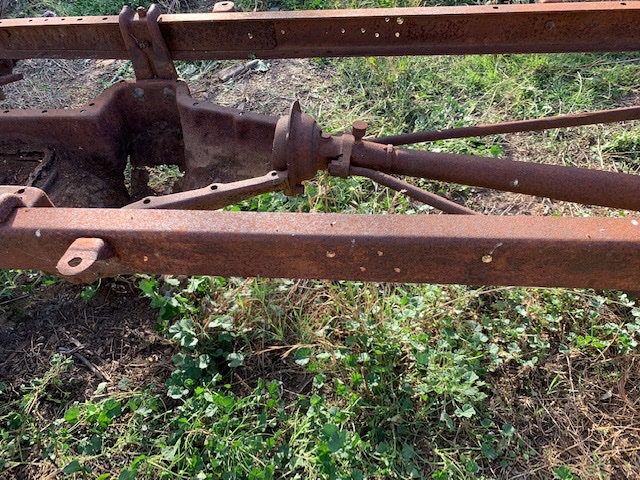 Your frame has seen a long life of hard use for several purposes, first under a car and later as a trailer. For trailer use the front axel has been turned around backwards in order to install a draw bar and lock the steering. The rear axel is large brake drum from a later 1926-27 car. The one picture we need but didn’t get was of the rear cross member which would help pin the frame date down. I would say that the fish plates were from a old frame repair and not original. A few things can help pin down the frame’s original use time line: