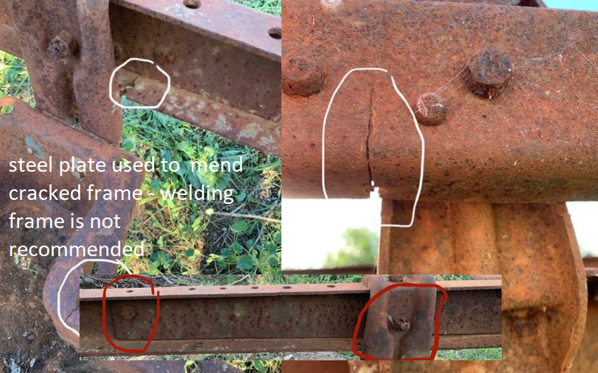 You have fishplates inside the frame rails. See the circled areas showing the plate in one side and rivets on the other. Only the earliest frames had fishplates. Have you measured the frame rail thickness? Is it thinner than .188" (5mm)?