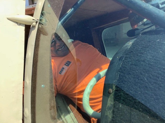Joe and myself stuffing ourselves in his plane after picking up my engine at his shop. Enjoy