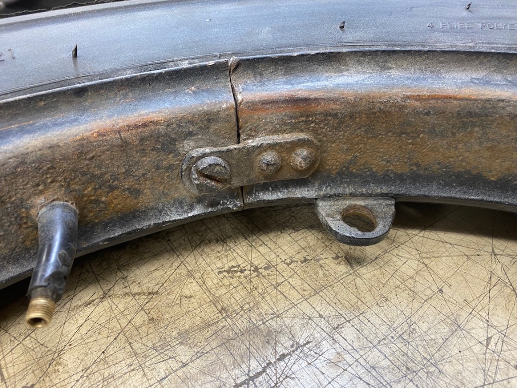 The lower photo shows a Canadian rim. There should be a pair of holes -n the outside flange on either side of the rim join. These were used when an exceedingly rare tool was used to collapse the rim when fitting tyres.
