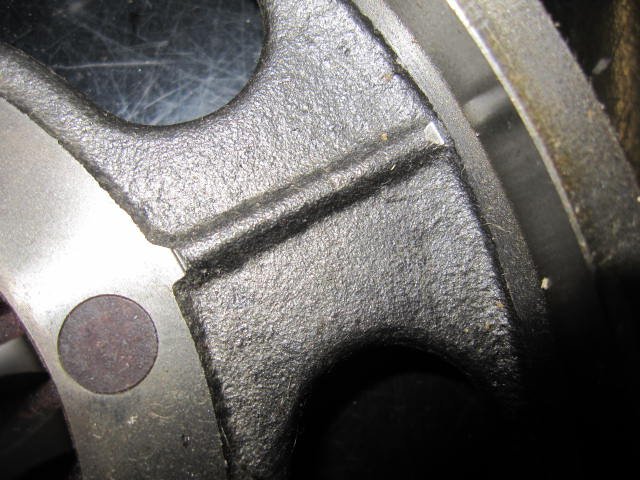 Clean the area on the non output shaft side and check very close between the rivets. That is where you find most cracks.