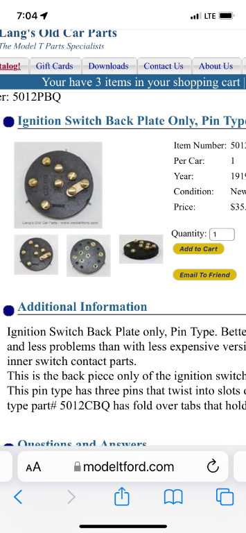 The "shaft", in his case, is the T camshaft.Norman Kling wrote: ↑Sun Apr 24, 2022 8:02 pmA common problem with a distributor is that the points stick closed which gives a constant ground. If your bushings in the shaft are worn, the cam moves away from the block on the points and the point gap gets smaller until the points stick. So check the point gap and also try to move the shaft side to side to see how it fits.
