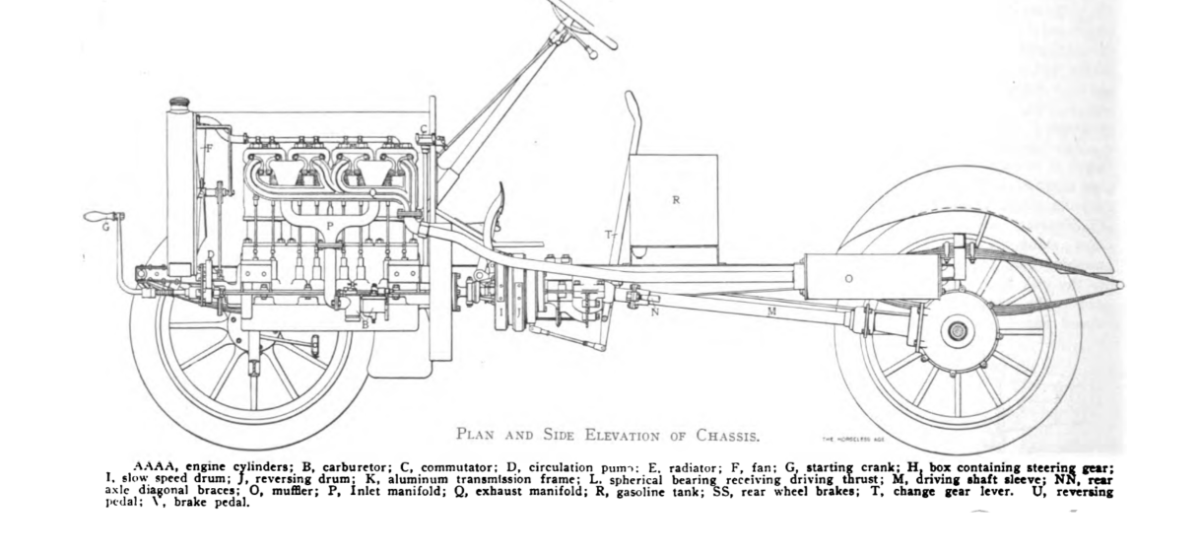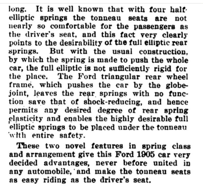 Fords three point construction of the differential was the first of its kind, according to this excerpt from a Cycle and Automobile magazine article. The car drawings were from the prototype, that had a bit smaller motor than the production B. B #1 in the Porter collection at Piquette appears to have the smaller motor.
