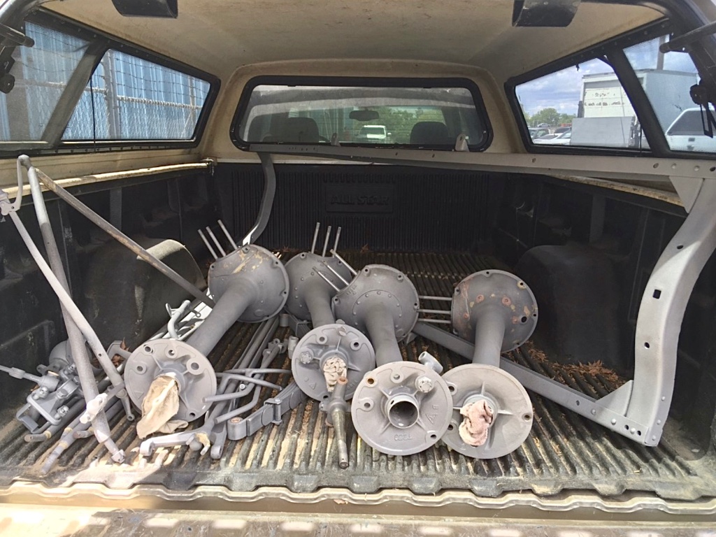 When you build a car for display you skip a lot of things or figure you will get to them later. Such is the case of the rear axle here. You work with what you have initially enough to get by. Poor housings to start with didn’t help. So I bought a better pair some time a go. Thought I would use the guts out of the first one but when I opened it up, broken ring gear and babbit thrust washers. So I needed to start over. Went thru 7 axles on the lathe before I had two good ones. If you go thru all this and the wheels don’t run true- what’s the point. So quick trip to Dave’s Sandblasting along with a few other pieces.