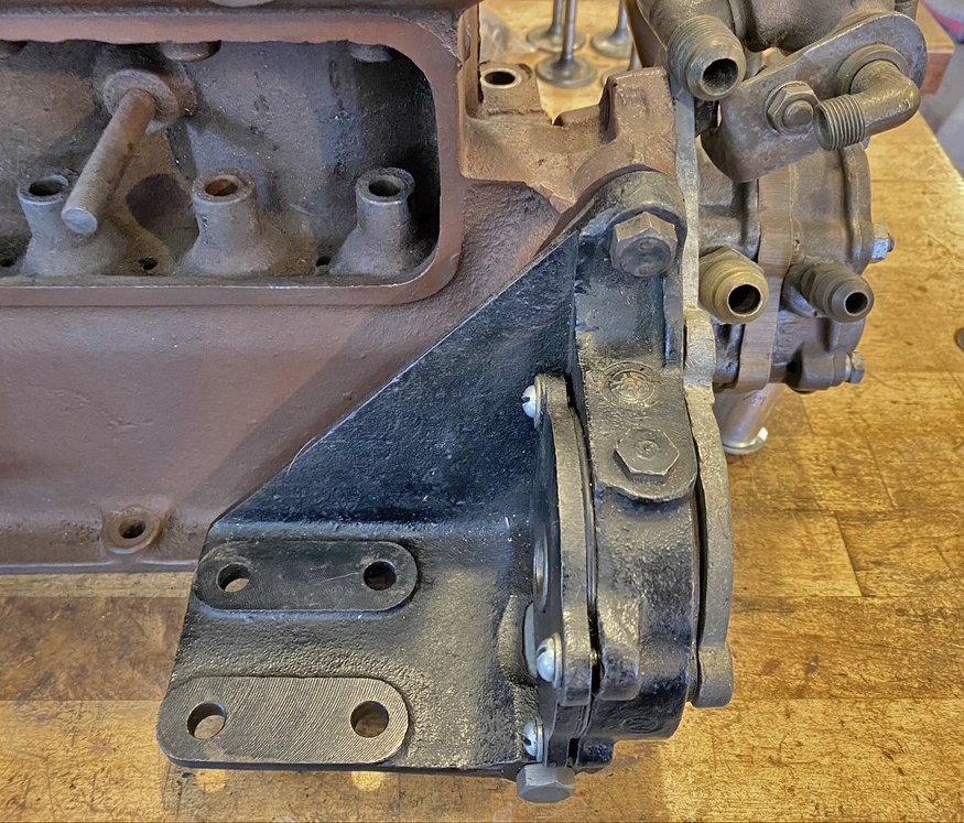In the Bottom photo: Is American Bosch mag adapter which takes the place of the original Ford generator mount. Both The Stutz Dual Delco and a ZR4 Bosch mag or any other mag need one of these, they are not inexpensive either and sell for about $500. There is one in the classified ads for sale now.
