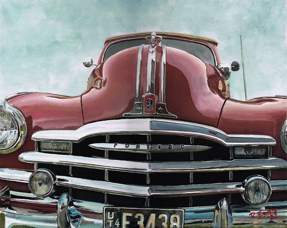 One of my favorite paintings was of a little cowboy looking into the chrome bumper of a Pontiac Chief. The reflection showed a band of Indians attacking and coming at him. I don't remember who painted it and can't find it now, but it was terrific.