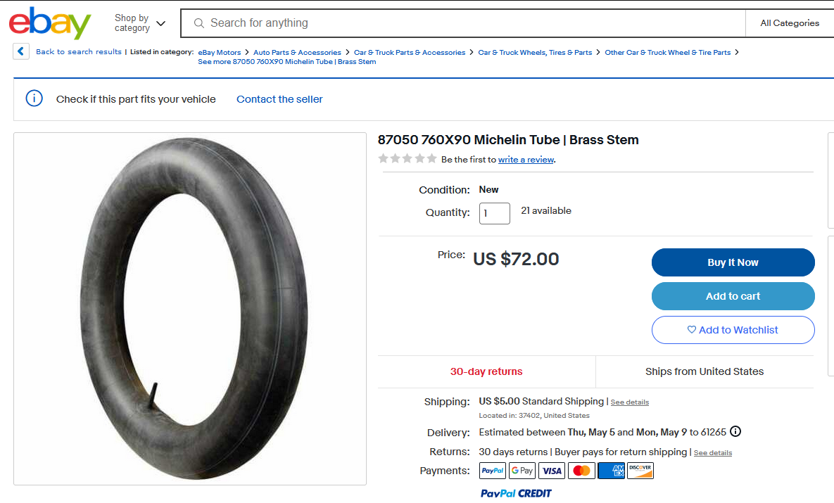 Then on eBay - a US seller - - not sure if the are the same Michelin model