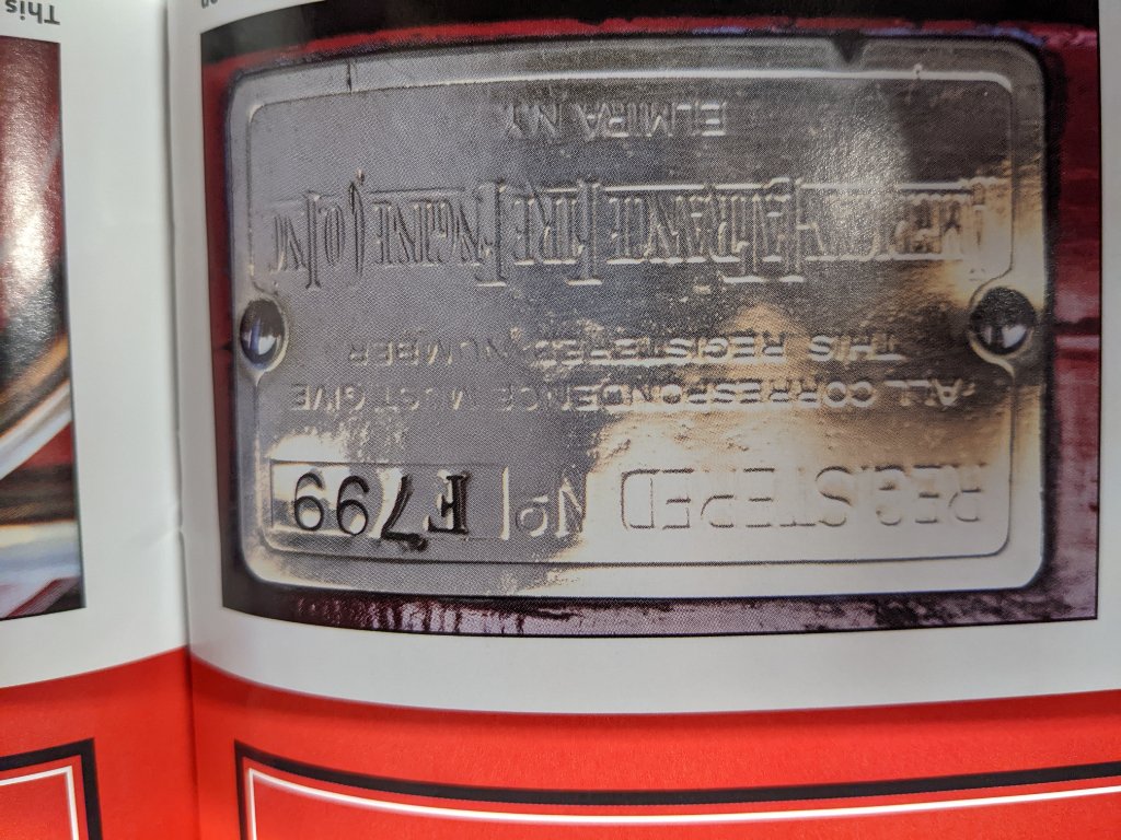 The above plate is not from our truck, but from another truck that was featured in the Vintage Fire Truck Magazine.