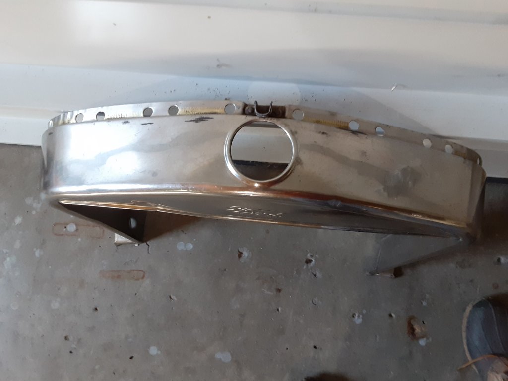 Head lamps and radiator apron restoration. Back side of apron primed.