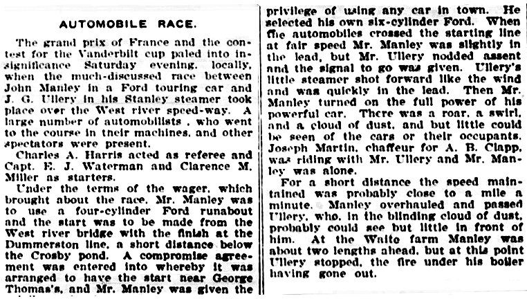 As to the Model K and Stanley race the Historical Society doesn't have a photo of the car. I assume you found the same "Vermont Phoenix" August 11, 1907, article covering the race posted below? I will post more on it soon as well.