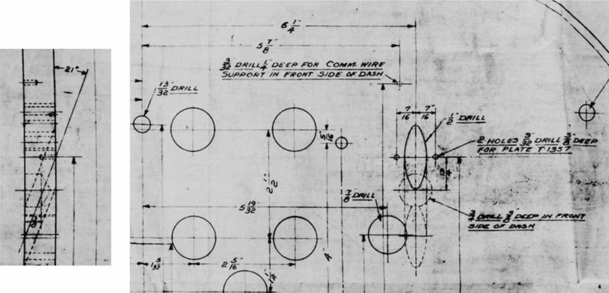 To add to your frustration, I found an October, 10th, 1916 drawing with a different configuration there. It is not clear but presents a later configuration. Here is a March, 3rd, 1915 drawing. Although it is of the square dash before the cowl was added, it shows the angled holes on both sides of the dash. T