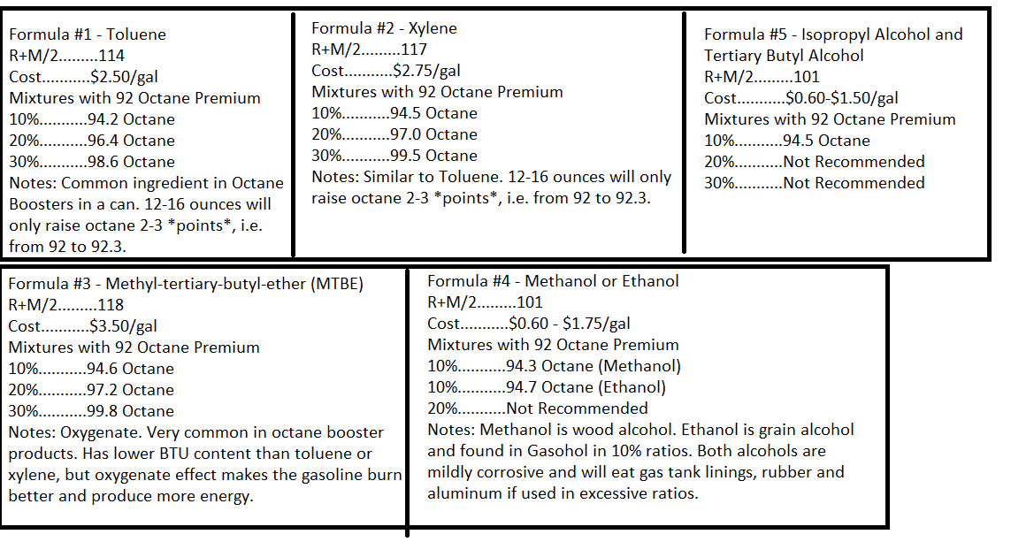 BUT Individually they can boost the Octane ratings (old prices being referenced)