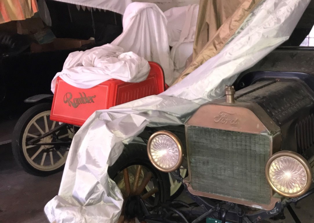 I watched our friend Joe resurrect this 1903 Rambler. It is on my trailer as purchased. He also allowed me to cover the top for him on bows he made himself. This shows it's height compared to a Model T. It was such a pleasure to watch Joe put it together over a period of years while I was building my YPC bus and some other cars. He was brilliant in finding things for it over the phone before the internet. He stumbled on a brand new body made 8 years before for another guy who backed out of the deal. The price was a bargain by then. Having others working these projects certainly kept me on track much like this Forum does now.