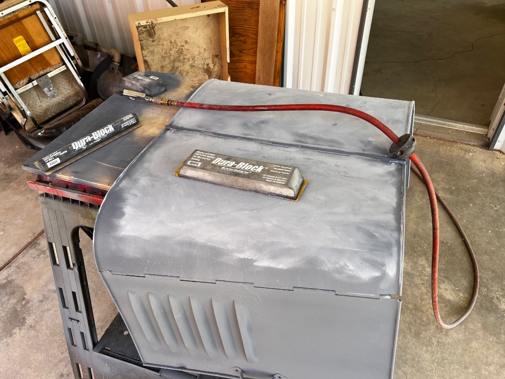 The old lacquer was awfully tough, and it was mighty slow going until I remembered the pneumatic scaler.