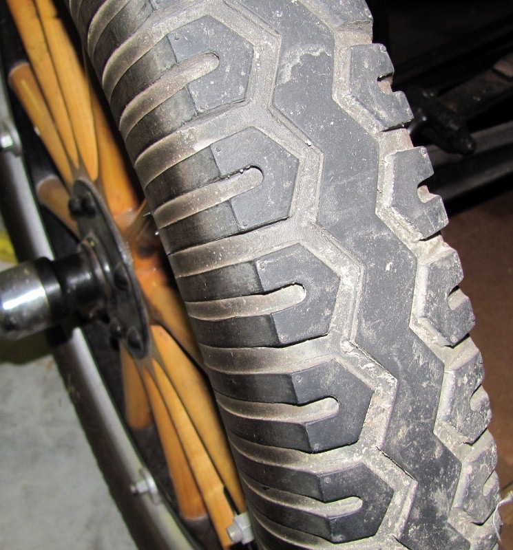 The tread pattern and sidewall are 'period' too, like the famous Samson Tire, similar sidewall bars.