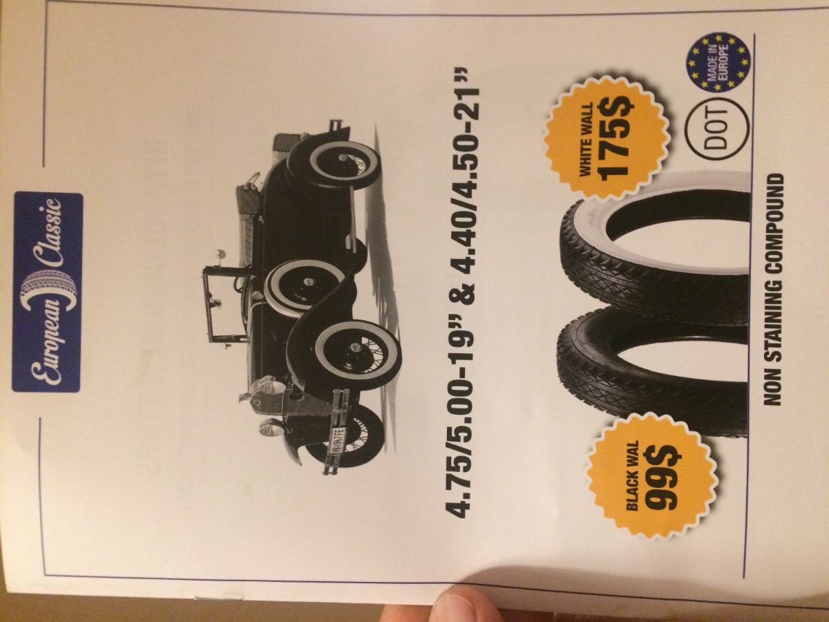 When I bought the 3 Model T's from the museum I also bought all the parts and with that I got a new set of Lester 30 x 3 and 30 x 3 1/2 tires new still 9in the brown paper nice and soft if you want a deal call me, Bob