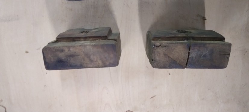 Leaving out this important block is IMO detrimental to the design. Note this original block removed, you can see the imprint of the crankcase arm, showing that it is giving support as the engine that moves during braking and forward motions, so a semi rigid support is needed. Wood does that job, these blocks are hard maple.