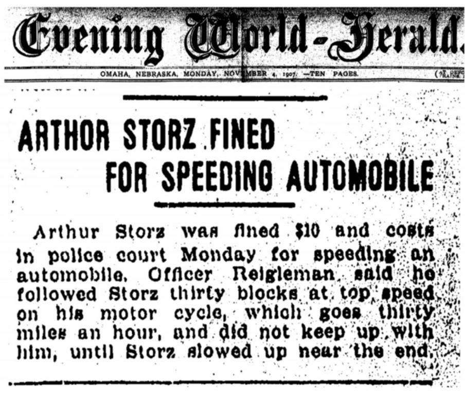 As of November, 1907, one of the Storz brothers received a traffic ticket for speeding with their Ford six: