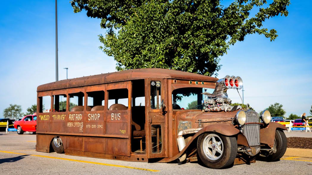The bus is probably sitting on "air bags" . When parked the bags are deflated and the bus is "sitting in da weeds" when ready to go the bags are aired back up and the buss will be at a useable ride height. I like it , but I have a little of the "dark side" in me. Well done rat rods will get more attention at a car show than most of the nice cars. That bus would probably still be sitting in a junk yard on in the woods of an old farm, slowly rotting away to a pile of rust. But now it has another chance at lasting longer.