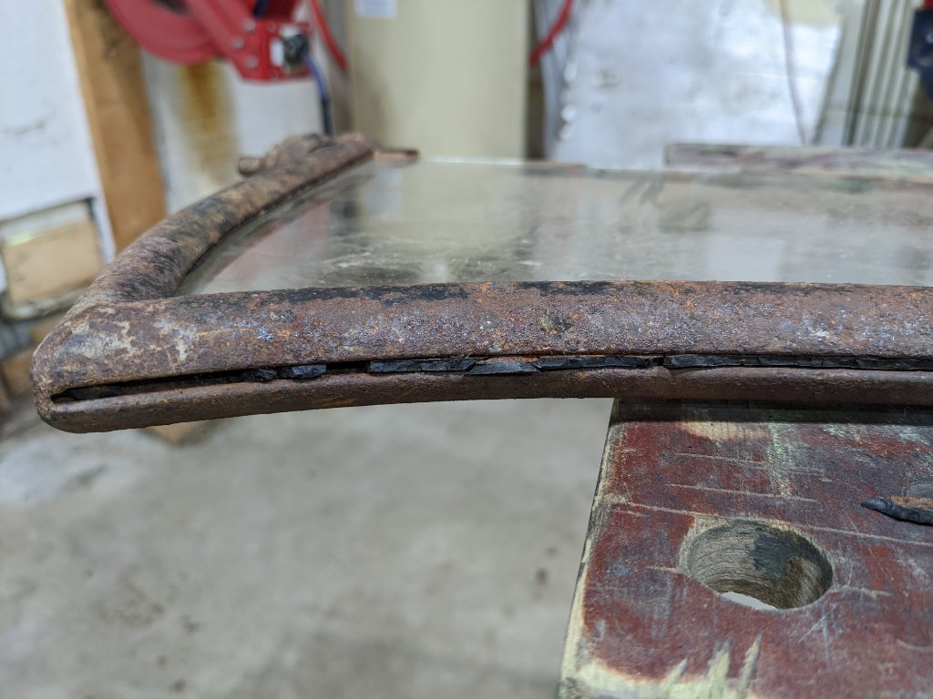 The frame appears to have been welded at some point. Rather than rewelding, I got another frame from a friend that I will use. I am trying to decide how to remove the brittle old cowl seal from the replacement frame. I could use advice from anyone who has done this. This is the seal.