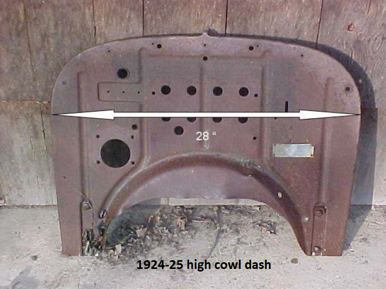 There are significant size differences between a '25 & '26 firewall (aka dash). So this propagates a question about what year your roadster body is. The difference is size and shape would be noticeable. Titles & engine numbers don't always agree with the actual car.