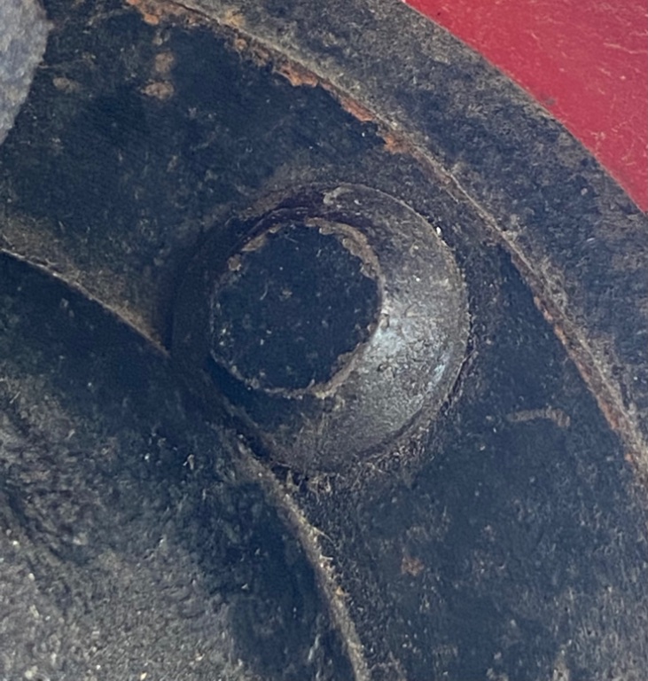 CatGuy - I found a couple loose wheel studs on the front wire wheel hubs on my ‘26. My hub holes were not wallowed out - just the stud heads and the swedge surfaces worn enough to keep me from tightening the wheel nuts. The top photo shows that even a stud that’s tight does not have a lot material keeping the stud head from turning. The bottom photo shows the small tig weld I used to allow tightening the nut.
