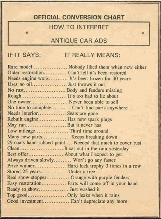How to interpret antique car ads