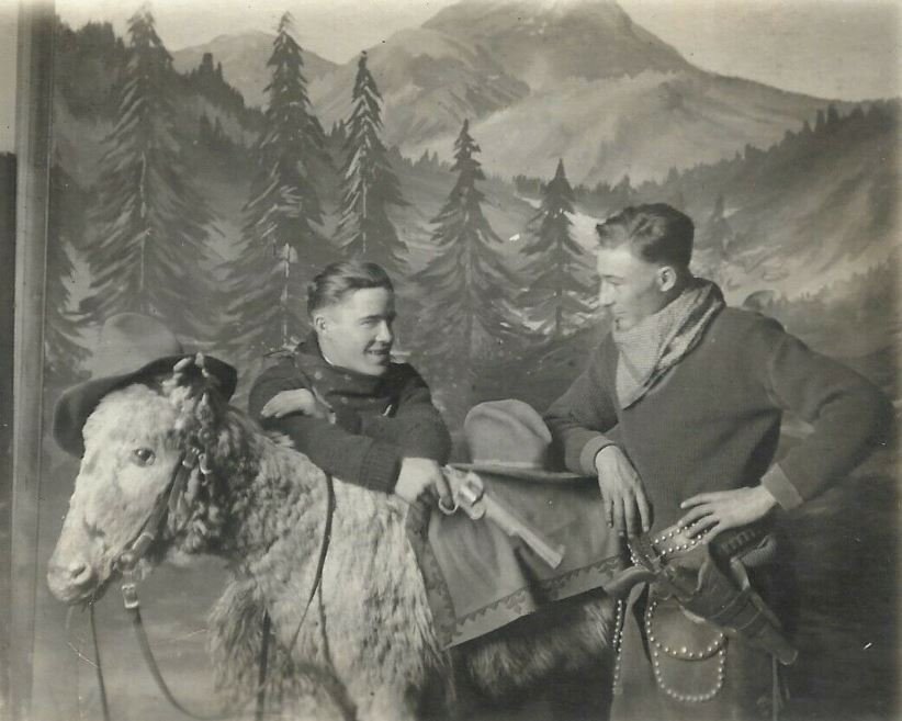 his teamed pair of two-legged horses, which must be the reason for this photo. At right